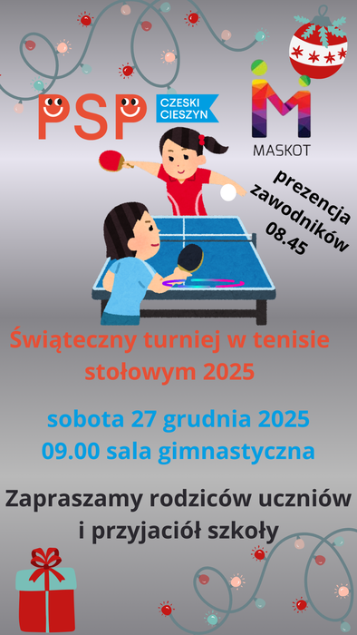 W sobotę 27.12.2025 od 08.45 w sali gimnastycznej.